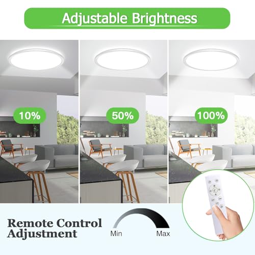 - 10 levels of adjustable brightness and 3 color temperatures ➤ Dimmable led ceiling light has 3 color temperatures (warm light 3000K, natural light 4000K, cold white 6500K), and the brightness range can also be adjusted between 10%-100%.