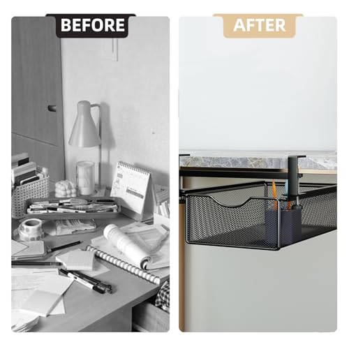 - Sturdy and Beautiful – The under desk storage drawer is made of durable metal mesh and holds about 15 lbs for long-lasting strength. Features a smooth, rust-resistant ABS coating, making it wear-resistant, durable, and fade-resistant.