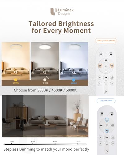 - 【Remote Control & Wall Switch Operation】Control your ceiling light your way – via standard wall switch or the wireless 2.4G remote. Whether you're in bed, on the sofa, or at your desk, lighting control is always within easy reach. The main light and the ambient night light can be turned on/off separately or together to suit your routine and mood.