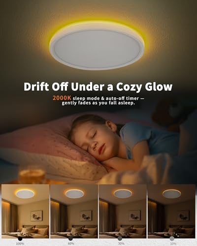 - 【Soft 2000K Backlight for a Calming Atmosphere】Unwind after a long day with our ultra-slim 30cm LED ceiling light featuring a built-in 2000K ambient night light. The gentle, indirect glow from the backlight creates a cosy and relaxing mood – perfect for drifting off to sleep, night-time feeding, or getting up quietly in the dark. The backlight brightness is independently dimmable, helping you wind down stress-free. Ideal for bedrooms, nurseries, or any space designed for rest and relaxation.