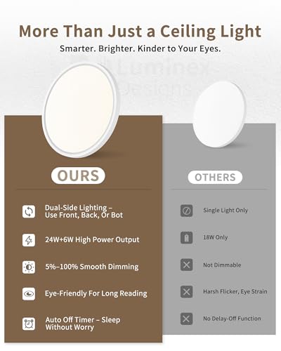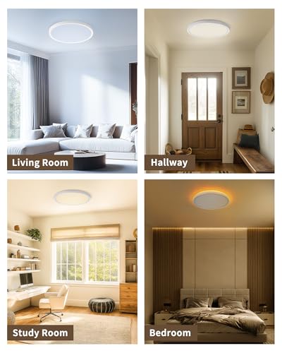 - 【Energy Efficient & Long-Lasting】With a total power of 24W + 6W and 2400 lumens of bright output, this energy-saving ceiling lamp helps reduce electricity bills while delivering reliable lighting for years (up to 30,000 hours). Flicker-free and glare-free for eye comfort. Includes a 2-year warranty for peace of mind.