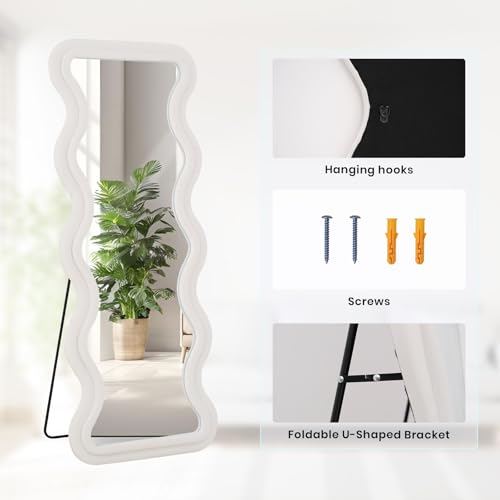 - Ivory Flannel Irregular Wavy Frame Floor Mirror: The full length standing mirror features a modern style that can complement any type of room decor, adding a touch of elegance to your room. It will be a great wall decor art piece for your home. This full body mirror with sleek looking is also great for selfies or pictures in general
