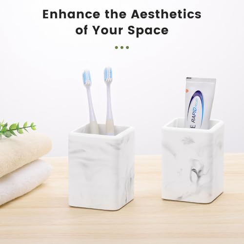 - Elegant Marble Pattern: This toothbrush cup adopts a unique marble pattern design, elegant and stylish, which can add a charm to your bathroom. It is not only a thoughtful mate for your daily storage, but also an ornament to embellish your living space and enhance your living style.