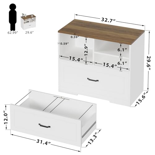 - Ample Storage Space: The spacious 83.1×39.6 cm tabletop is ideal for printers, plants, or decorative items, while three open shelves provide easy access to frequently used items. The large drawer ensures secure storage for files or office supplies, keeping your workspace organized and clutter-free. This large file cabinet is thoughtfully designed to combine beauty and practicality.