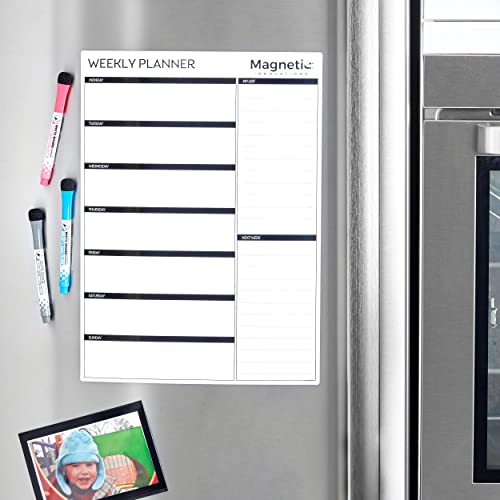 - THE PERFECT SIZE FOR A WEEKS PLANNING – Our A3 sized magnetic fridge whiteboard will have you organised in no time as it has plenty of space to write your daily meals and tasks along with other notes / lists and reminders. It’s shipped flat packed so will arrive pristine and crease free.