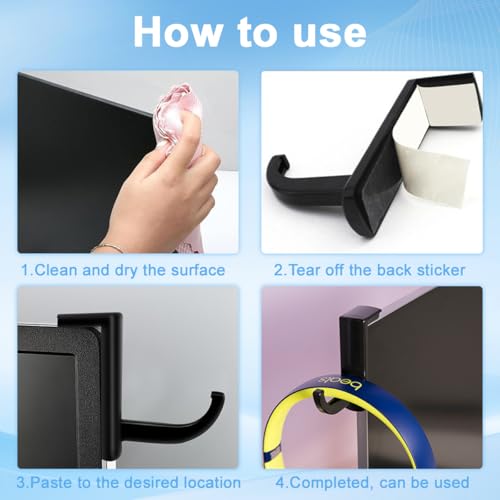 - Strong Adhesive: Featuring a heavy-duty double-sided adhesive, this headphone holder firmly attaches to PC monitors, desks, or smooth walls, ensuring long-lasting stability without residue.