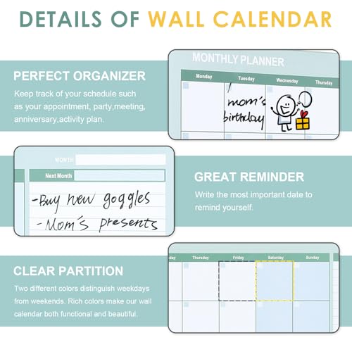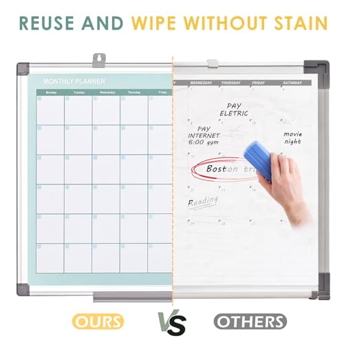 - KEEP TRACK OF IMPORTANT DETAILS: The aluminum-framed whiteboard calendar is simply perfect for home, office, school, classroom, dorm room, kitchen, bedroom, or any other place. This will help you to organize all your daily tasks such as to-do lists, office meetings, study assignments, grocery lists, meal menus, etc.