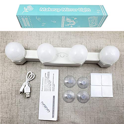 - 【Adjustable Brightness & Color Temperature】 This LED vanity mirror light with 4 dimmable bulbs. You can increase or lower the luminance by short pressing the buttons, adjust the color temperature by long pressing. Bright and not dazzling light allows you to makeup for a long time without hurting your eyes.