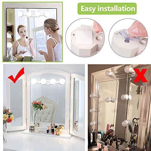 - 【Easy to Install】 Hollywood style fill lights delivery provide matching suction cups and stickers. Suction cups mounting suitable for the place smooth, stickers mounting suitable for the place rough or smooth. You can just installed in seconds without any tools or wiring.