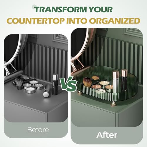 - 1. High-quality material: The makeup organiser made of thickened TPE material, thickened design with anti-slip texture design on the edges, durable, and with 4 gold stands makes the makeup tray durable, place more stable.