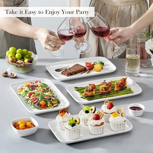 - 【12 INCH LARGE SERVING PLATTER SET OF 4】This rectangular serving tray features a simple, unique design style with a spacious capacity, the set includes four trays (Each measuring 12.09×7.28×0.79 inches) The large-capacity design provides plenty of space to hold your favorite foods.