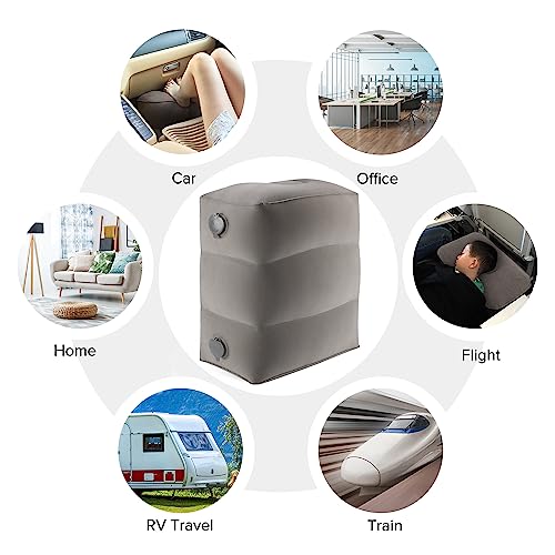 - 【Fast Inflation and Deflation】The inflatable footrest has a 2-in-1 dual valve design(Pump is NOT included). When you're done blowing, push the clear cover up and push the entire valve in so that it sits flush with the side of the travel footrest, providing a better seal and eliminating the need to bring a pump and the hassle of in-flight noise.
