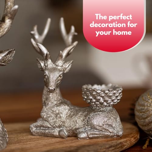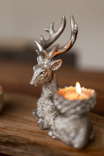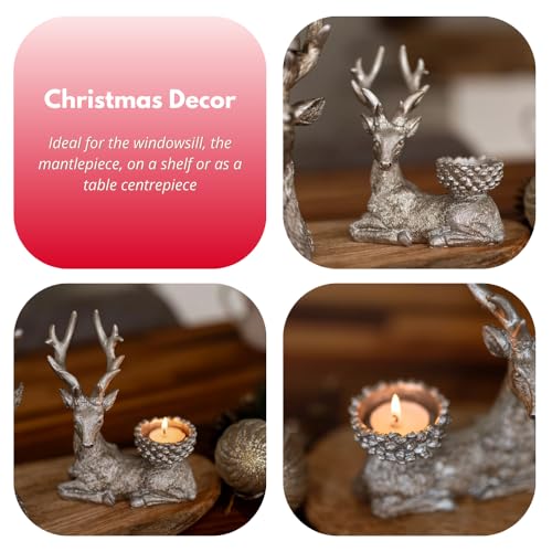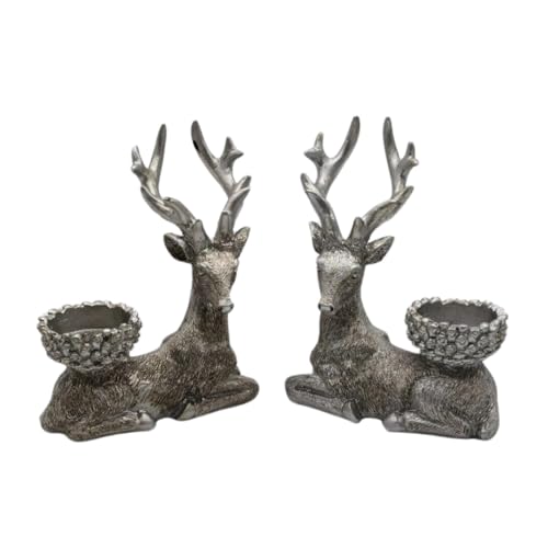 - This Set Of Two Resin Deer Tealight Holders Are Elegantly Crafted With High-quality Resin And Finished In A Striking Silver Color. Ideal For Adding A Touch Of Festive Charm To Your Christmas Decorations.