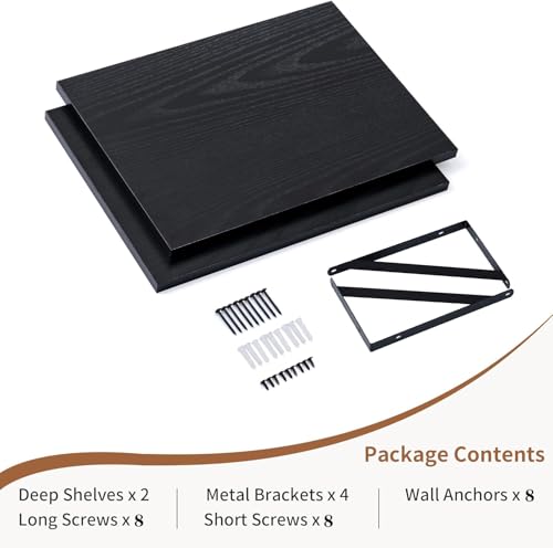 - Deep Floating Shelves – Measuring 16 inches wide and 12 inches deep, our wall shelves are widened to add additional storage and display space, perfect for use as bookshelves or floating nightstands