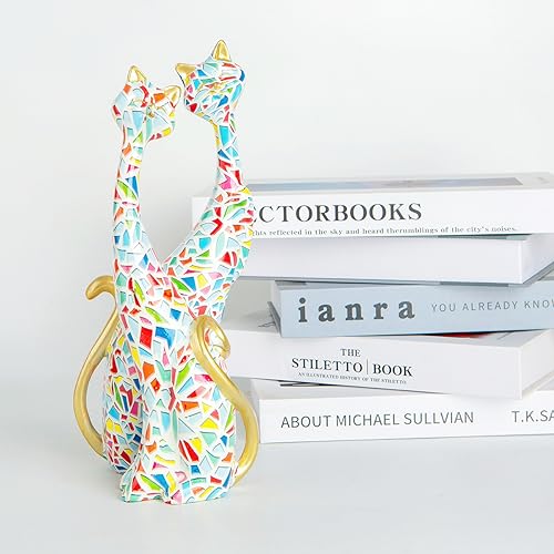 - Rich in color and creative in design, this resin cat statue is unique with its playful spirit of art. Great to decorate your living room, bedroom, study and office. Gorgeously lifelike and exquisitely handmade, these resin cat sculptures are amazing to decorate your personal space.
