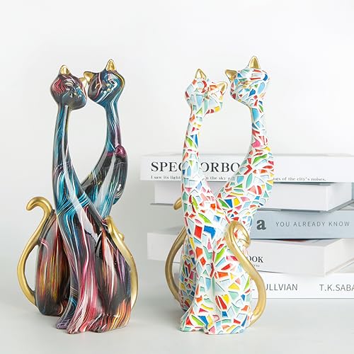 - This cute and charming cat figurines set contains two cats. Each pair is a unique work, and slightly different in detailed prints from the pictures. They are the best choice for home decoration to manifest your taste of art, and also perfect gifts for your cat loving friends.