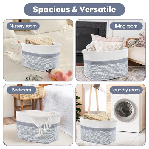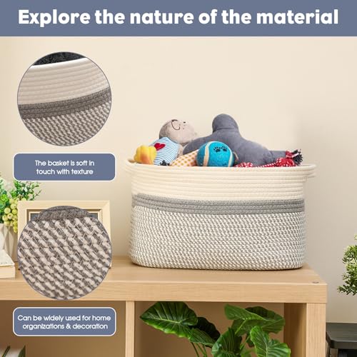- 【Soft and Strong Material】 The storage basket is made of cotton rope, which is soft to the touch and not easy to deform, making it ideal for family use, especially for toddlers, babies, children and pets. This storage basket is a smart choice for storing clothes, toys, stuffed animals, blankets, and even throw pillows without worrying about scratching clothes or damaging skin.