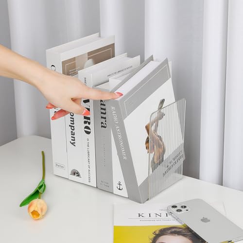 - Safe Rounded Edges: With smooth curves, these clear book stands protect hands & books from scratches. Unique vertical stripes design doubles as stylish book ends for any space