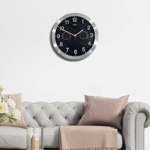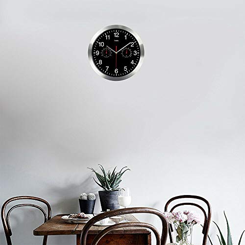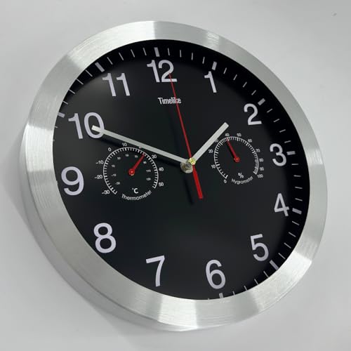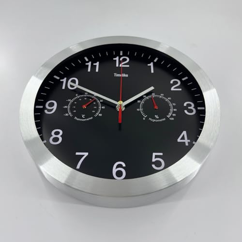 - Design:This wall clock with thermo- and hygrometer and high-end scanning silent movement,black clock face, red thermometer and hygrometer,let you immediately see today's weather clearly