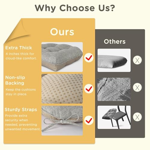 - Cloud-Like Comfort:Tired of those hard dining chairs? Our 4-inch thick tufted dining room chair cushions are like a fluffy cloud for your behind! Made from soft, faux linen fabric, it's so cozy that you'll find yourself lingering at the dinner table long after the meal is over.