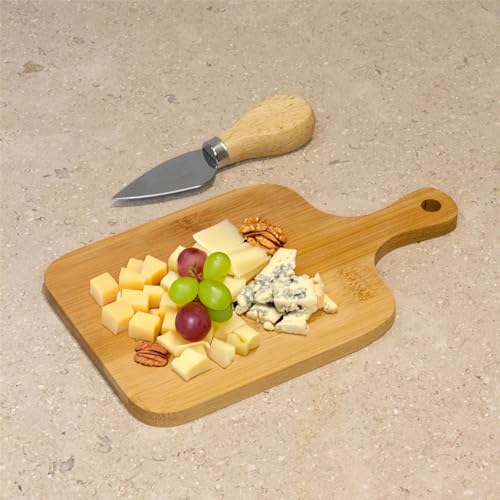 - CHEESE BOARD | The Mini Bamboo Cheese Board with Knife is a chic and functional addition to any kitchen. This beautifully crafted set features a durable bamboo board and a sharp stainless steel knife. Perfectly sized for a variety of uses, it’s ideal for casual snacking at home, providing a convenient and elegant way to enjoy cheese and other snacks. Its compact size also makes it great for picnics and outdoor gatherings, offering a quick easy to use option for on-the-go dining