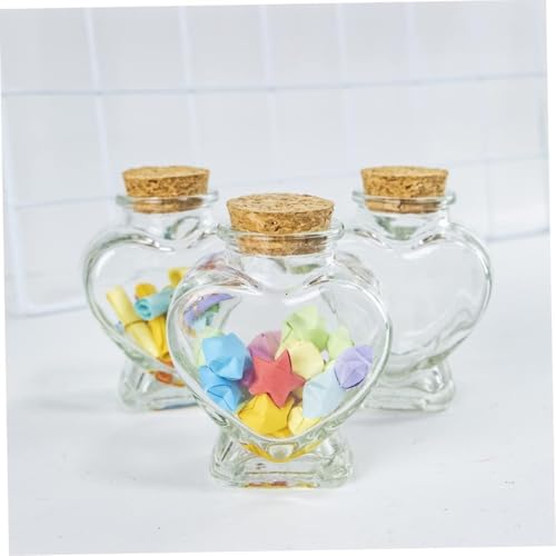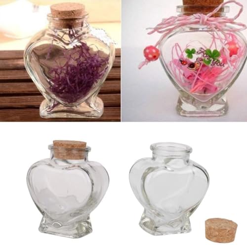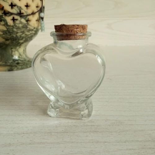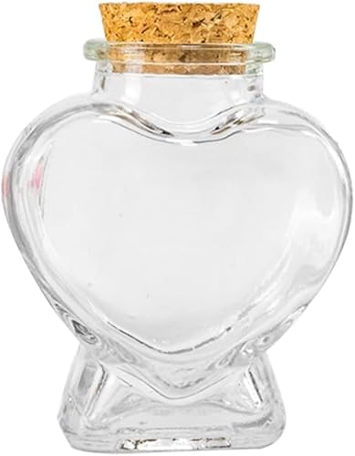 - DESIGN: Heart-shaped mini glass bottle with cork stopper, perfect for decorative display and small keepsakes storage