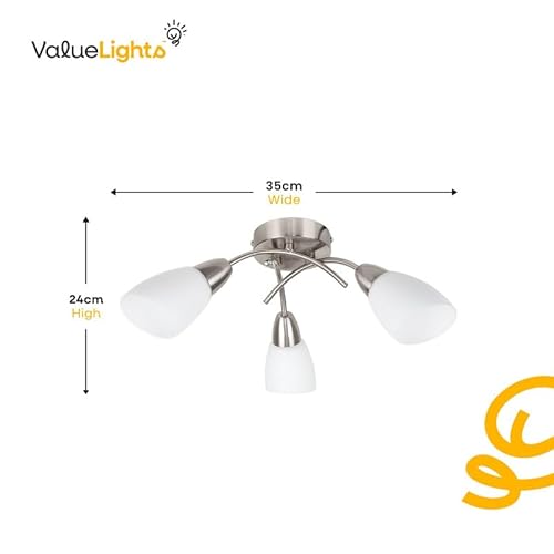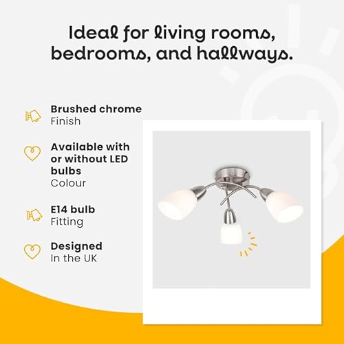 Update your living space with the latest trends in lighting with this Modern 3 Way Brushed Chrome Ceiling Light Fitting with Frosted Glass Shades. Mixing quality materials and stylish designs, our range of products are perfect for adding a modern style to your home.