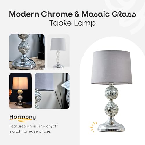- TABLE LAMP – Update your living space with the latest trends in lighting with these Modern Chrome and Mosaic Glass Table Lamps with Grey Shades. Mixing quality materials and stylish designs, our range of products are perfect for adding a modern style to your home.