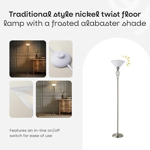 - FLOOR LAMP – Add timeless charm to your home with this Traditional Style Nickel Twist Floor Lamp with a Frosted Alabaster Shade. Mixing quality materials and traditional designs, our range of products are perfect for adding classic elegance to any room.