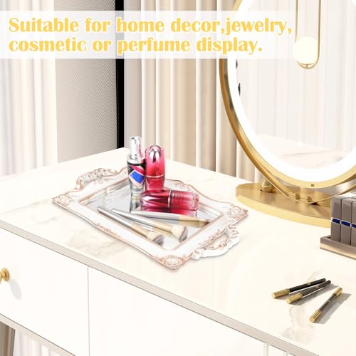 - 【Various Scenarios】Storage tray is suitable for any occasion, such as bars, restaurants, cafes, offices, homes, and can be used as a beautiful white and gold mirrored tray, bathroom tray. Use the jewelry tray, makeup tray to display your beauty essentials: skin care products, lipstick, foundation, eye shadow, perfume.
