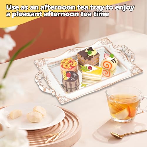 - 【Large Capacity Tray】The size of the mirror tray is 37.5 x 23.5 x 3cm / 14.7 x 9.25 x 1 inch. It can store cosmetics, perfumes, jewelry, keys, etc. It is beautiful and convenient. This retro mirror tray is designed for display and storage