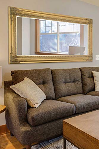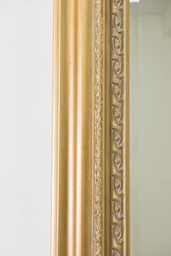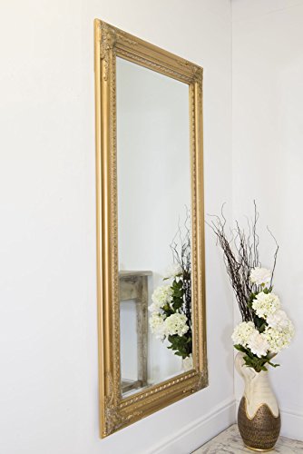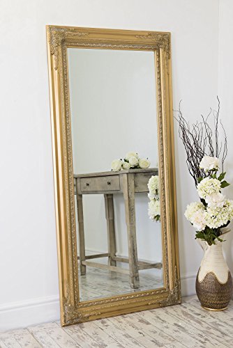 - Beautiful Full Length Floor standing Leaner Large Gold classical hand finished french style Antique design wall mounted mirror boasts ornate detailing in all four corners and sides and comes with premium bevelled mirror glass.
