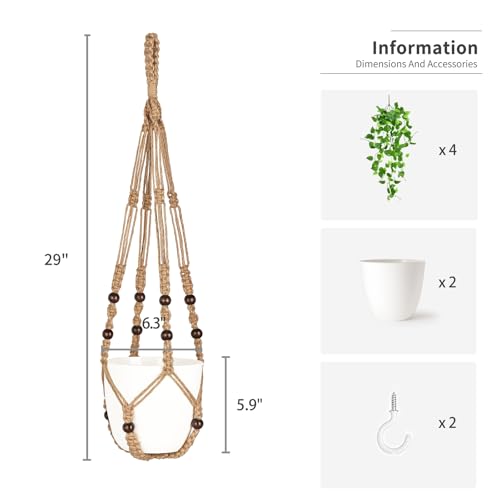 - Rewarding Artificial Hanging Plant Set: Comes with two approx. 2.5ft pothos faux plants, a 29"L macrame hanger, a plastic pot with 6.5" in opening diameter, 5.7" in height, and a plant hook in a set. This hanging fake plant can be easily assembled, just put the pot in the macrame plant hanger and put the fake plants in the planter, then hang it up