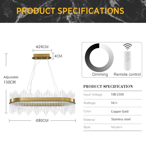 - 【Dimmable Temperature & Size】 The Crystal Ceiling Light offers three different color temperature options – Warm(3000K) – Neutral(4000K) – Cool(6000K). Light body D31.5" (80cm)xH11.8" (30cm), ceiling base :D9.45"(24cm). Adjustable Hanging chain length 18.9-59.06"(48-150cm).This lighting is perfect for controlling the ambiance of any room, chandelier for living room creating the perfect lighting atmosphere for different occasions.