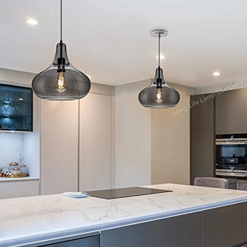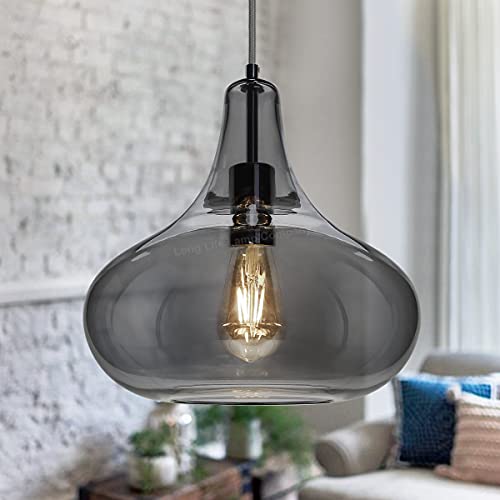 - Grey coloured Glass wider tear drop dome like pendant light semi transparent
