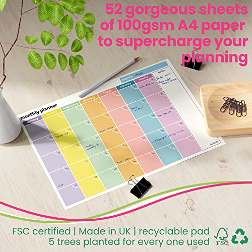 - BE A PLANNING NINJA! – Organise your month with ease using our perfectly proportioned A4 planner with 52 tear-off sheets printed on quality 100gsm sheets. Each sheet is undated so you can start using the calendar straight away