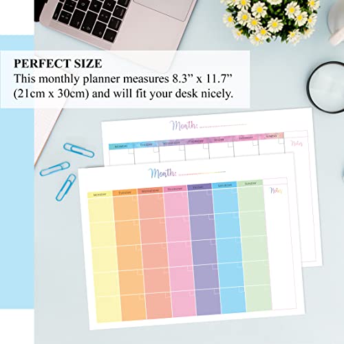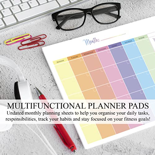 Monthly Planner Pad with 50 Tear Off Pages Notes Section, Undated Desk Calendar Personal Organiser, for Work, School, Meal, and Fitness Planning