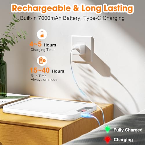 - Long-Lasting 7000mAh Rechargeable Battery:The battery motion light for closet comes with a high-capacity 7000mAh battery, a full charge within 5 hours,lasts 15~40 hours in steady-on mode and 30 days in sensor modes (Depends on brightness and frequency of use).