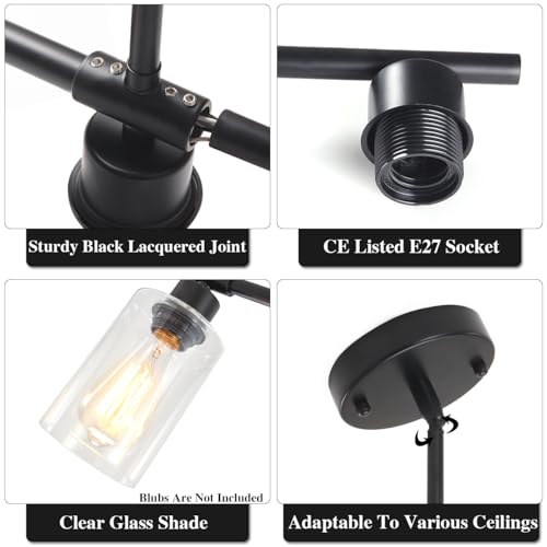 - 💡【Bulb Requirements and Dimmability】This black pendant light fixtures requires 3 E27 base LED, Edison, CFL, incandescent, or halogen bulbs (not included), each with a maximum of 60W. The black chandeliers ceiling light is fully dimmable using a compatible dimmer switch (not included).