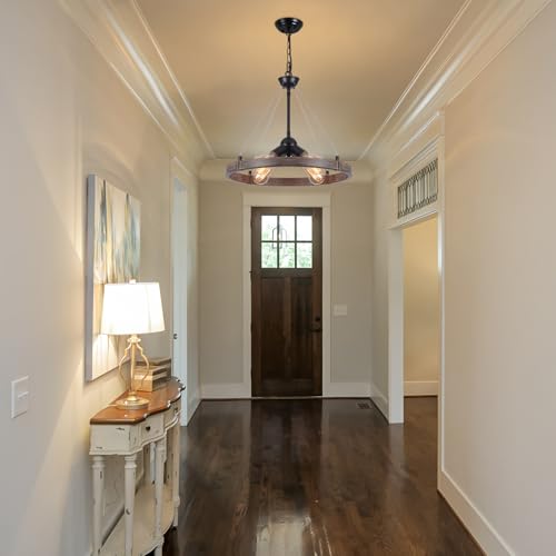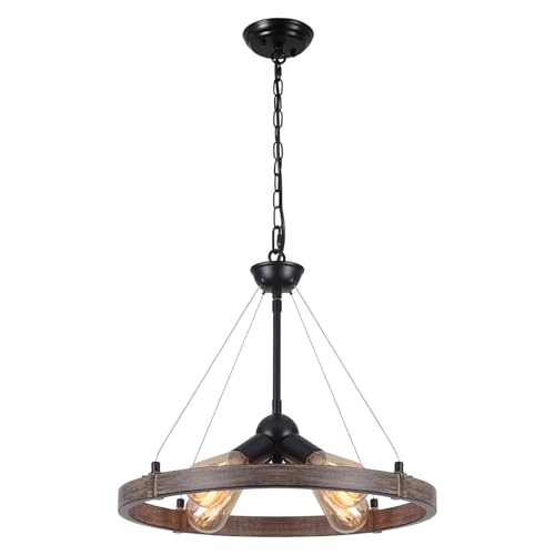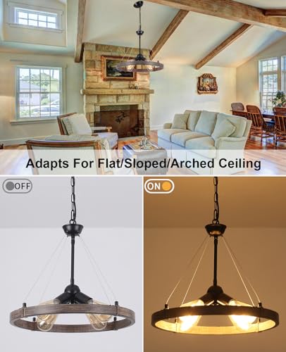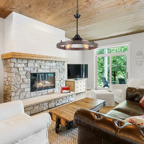 - 💡【Height Adjustable】With an 1.5 m adjustable hanging chain, this wagon wheel chandelier can be adjusted from 40 cm to 190 cm in height easily, which suits for any room no matter high or low ceiling. It also works well with flat, slanted or vaulted ceilings due to the flexibility of ceiling mount pans.