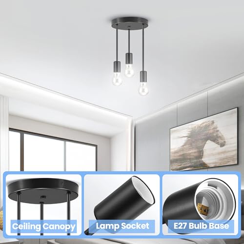 - Stylish 3-Light Design – Instantly upgrade your space with 3 pendant ceiling light bulb holders at different heights (9.5", 7.5", 5.5") for a layered lighting effect that draws attention and compliments
