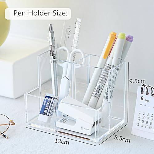 - Transparent Acrylic Pen Holder – The acrylic pen organizer is about 13cm*8.7cm*9.8cm (L*W*H),which can keeps all your stuff well organized,clean and tidy.