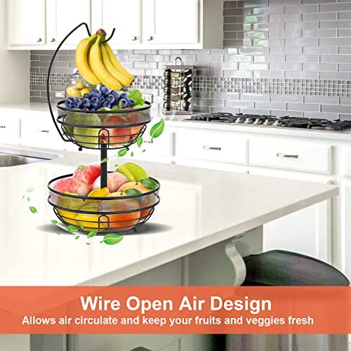 - 【Large Capacity Fruit Basket】2-tier fruit storage, including 2 bowls and 1 banana hook, allows you to store a lot of fruits and vegetables, and can be applied to any place in your home that needs storage, freeing you up for more storage space.