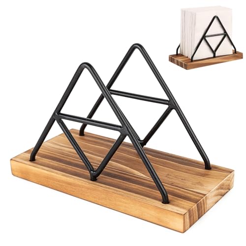 - 【Simple Design】This modern style napkin holder with Iron Frame with Wooden base looks unique, special, and stylish in any place you place it. Create a warm and romantic atmosphere