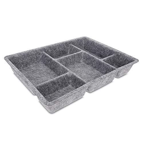 - PRODUCT DETAILS: The desk organiser measures 40.5 x 30.5 x 6 cm with a variety of different sized compartments. The felt is a neutral colour that appeals to women or men.