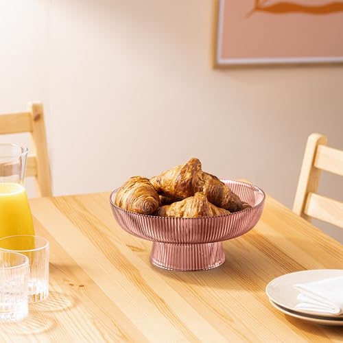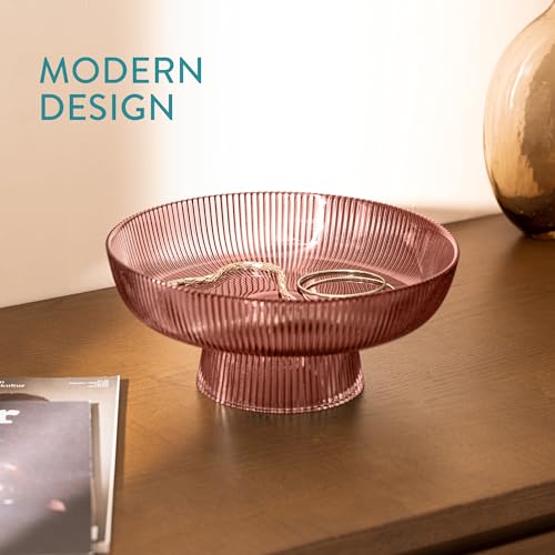 - DECORATIVE DISH: Present fruit in style with this beautiful glass bowl by Navaris. With its tinted glass finish, this coloured glass dish can make an elegant centerpiece on a kitchen, dining or coffee table.