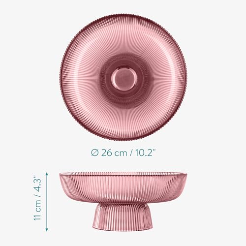- SPECS: This elegant fruit dish measures 26cm in diameter and 11cm high (10.2 inches in diameter and 4.3 inches high). The stylish bowl is made of solid glass.