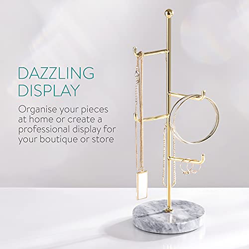 - BEAUTIFUL MATERIALS: The jewellery display is constructed from sturdy metal with a classy and elegant marble base. With its durable materials, the stand will serve you for years to come.