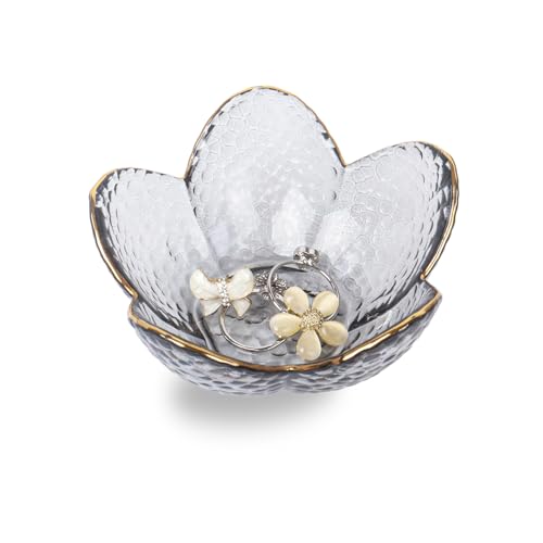 - Elegant Flower Design: Beautiful flower-shaped glass trinket dish, which features a luxurious gold rim that enhances its sophistication and complements modern and vintage decor styles.