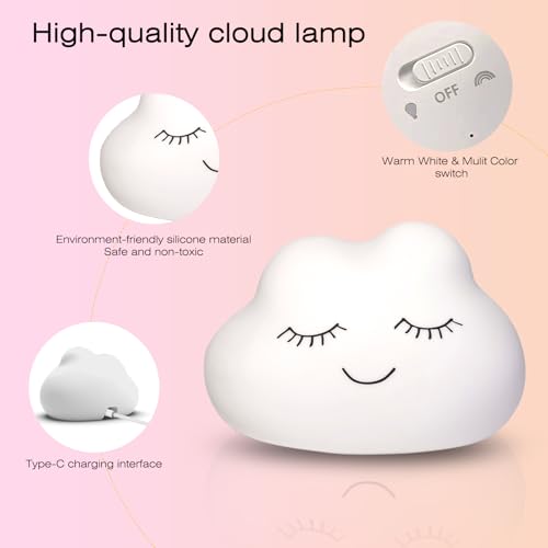 - Childrens Night Lights Bedroom Essential – A Perfect Gift: With its cute cloud design, this childrens night lights bedroom accessory adds charm and comfort to any space. It creates a soothing sleep environment while serving as a charming decorative piece. A thoughtful gift for birthdays, baby showers, or holidays.